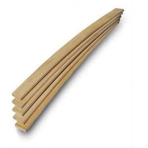 Ламели – это упругие деревянные рейки, которые крепятся к каркасу кровати и служат опорой для матраса. Мебельные ламели изготавливают из тонких пластов тщательно просушенной древесины, которые пропитывают клеем, нагревают и слегка изгибают, после охлаждения рейка сохраняет изгиб.
